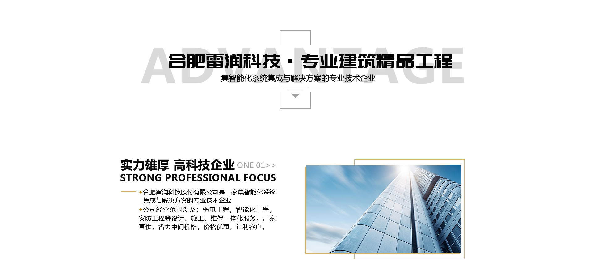 合肥雷潤(rùn)科技股份有限公司成立于2014年,經(jīng)過(guò)多年的蓄勢(shì)發(fā)展,已成為行業(yè)內(nèi)頗具影響力的智能化系統(tǒng)集成與解決方案的技術(shù)企業(yè)。公司經(jīng)營(yíng)范圍涉及:建筑智能化系統(tǒng)、綜合布線、安全技術(shù)防范系統(tǒng)、車牌識(shí)別系統(tǒng)、門禁控制系統(tǒng)、廣播會(huì)議多媒體、計(jì)算機(jī)網(wǎng)絡(luò)、應(yīng)用軟件定制開(kāi)發(fā)、機(jī)房工程、多媒體展廳、LED屏信息發(fā)布系統(tǒng)等的設(shè)計(jì)、施工、維保一體化服務(wù)。同時(shí)代理經(jīng)銷各類電子電氣產(chǎn)品。我們與國(guó)內(nèi)外眾多品牌供應(yīng)商建立了良好、穩(wěn)固的合作伙伴關(guān)系(如:??低?、天地偉業(yè)、IBM、華為、H3C、銳捷、APC、康普、Honeywell、R&M、BOSCH、捷順、HID、TOA、迪士普、SAMSUNG等)。為單位、醫(yī)院、學(xué)校、國(guó)企、外企、房產(chǎn)物業(yè)等客戶提供的系統(tǒng)集成和產(chǎn)品技術(shù)服務(wù),并獲得用戶好評(píng)。 我們擁有一支朝氣蓬勃技術(shù)的團(tuán)隊(duì),現(xiàn)有本科學(xué)歷以上員工占總?cè)藬?shù)的80%,并且擁有12名中工程師、7名注冊(cè)建造師、各類技術(shù)資質(zhì)工程師15名。具備的技術(shù)力量和的實(shí)施團(tuán)隊(duì)。我們始終秉承I...